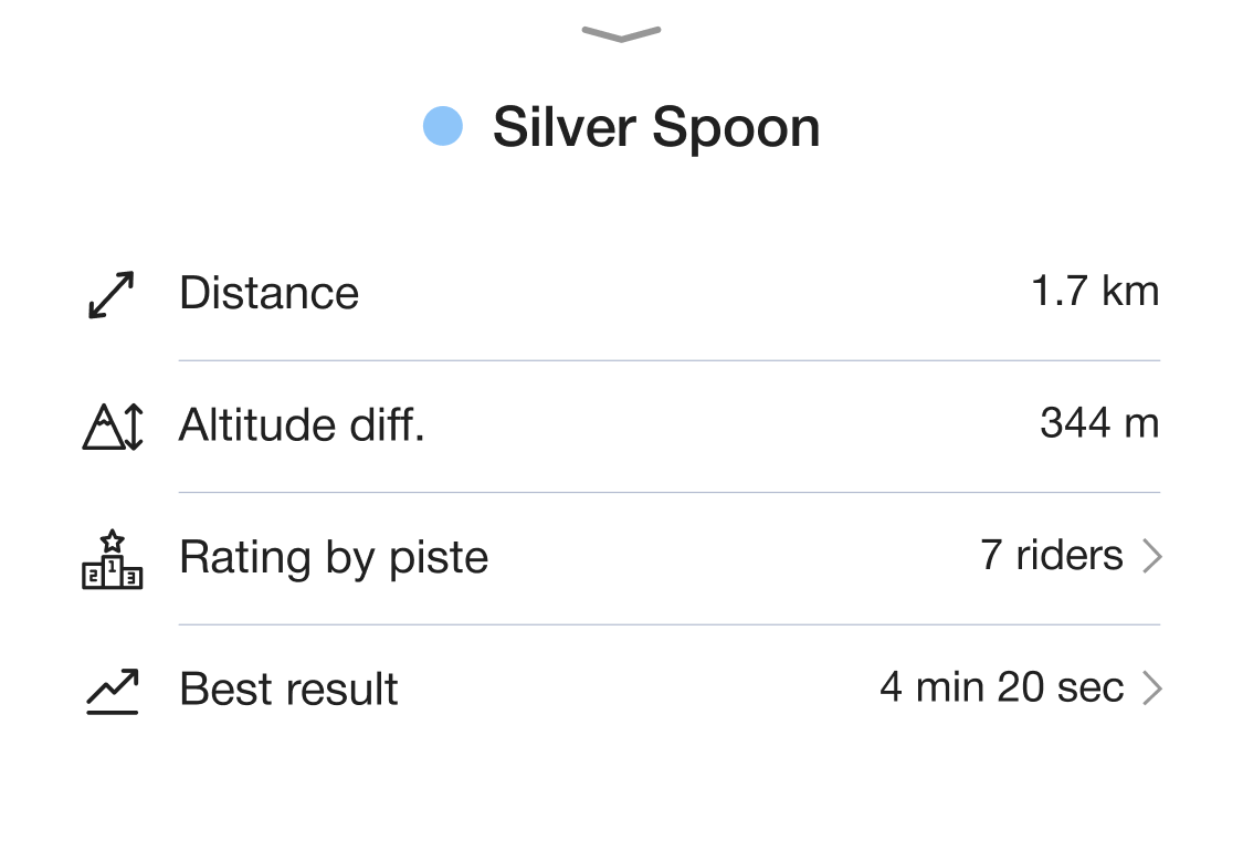 Skill provides detailed ride statistics by automatically detecting all pistes that you fully covered during your ride.